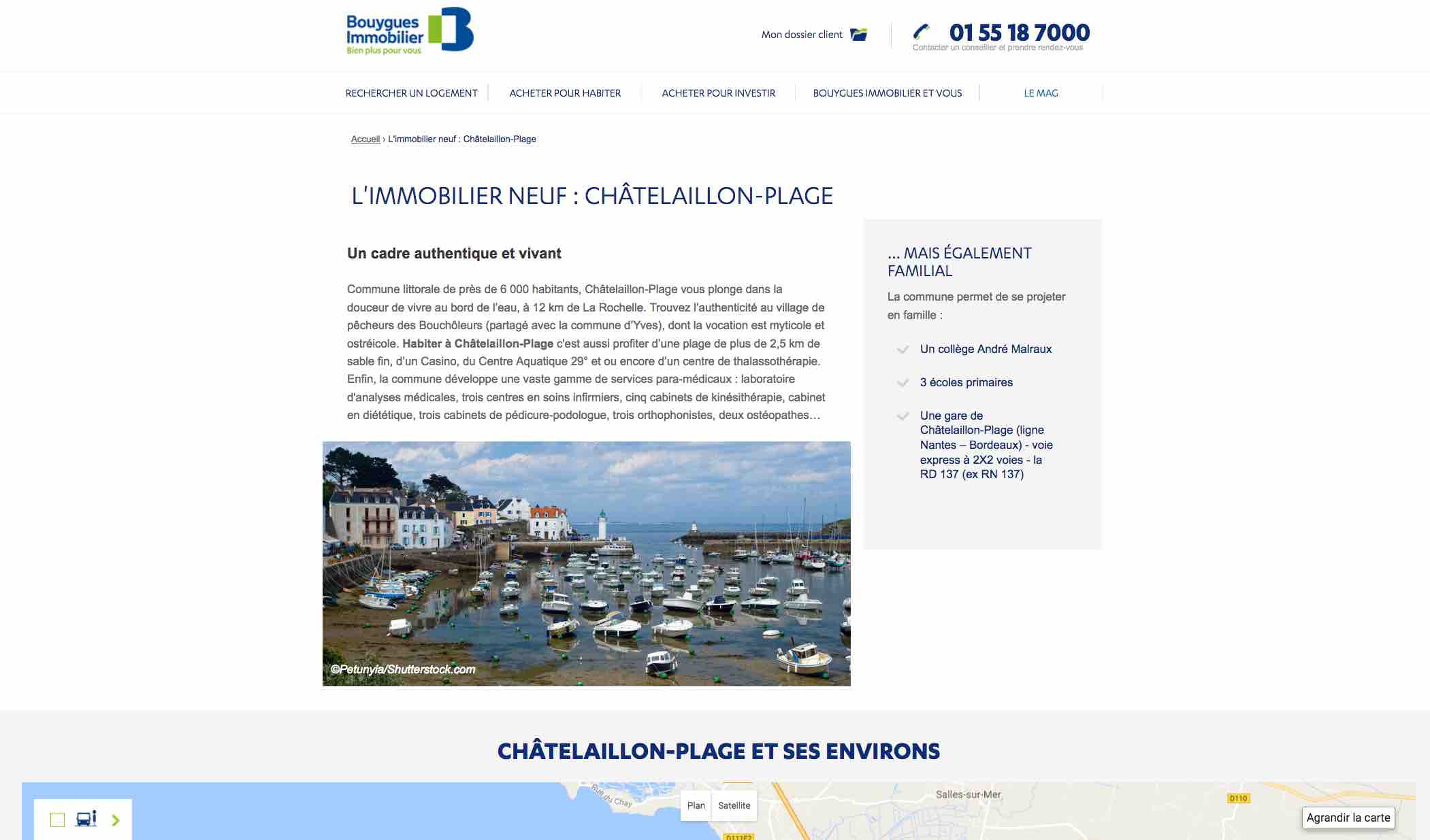 Début septembre, Bouygues diffusait enfin une information sur son site internet, et quelle information ! La photographie d’un petit port de Bretagne (voir ci-après) était sensée illustrer Châtelaillon et le public ciblé n’était certainement pas une famille ou un actif travaillant sur la CDA , pas davantage un investisseur soucieux de privilégier ce type de public.