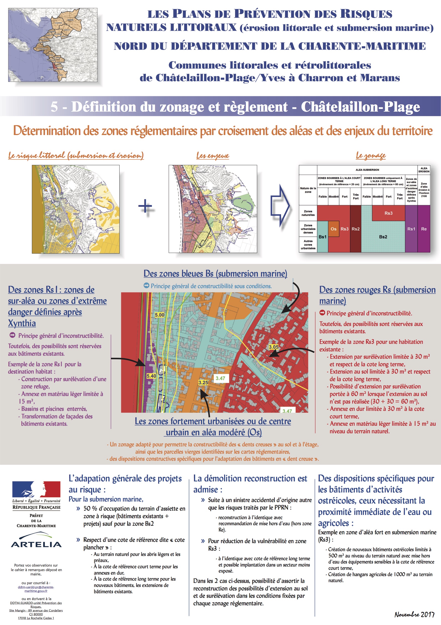 - La carte de zonage règlementaire pour Châtelaillon consultable en cliquant ici: vous pourrez déterminer dans quel type de zone serait classé votre domicile en fonction de sa localisation (Bs1, Bs2, RS1 etc…).
