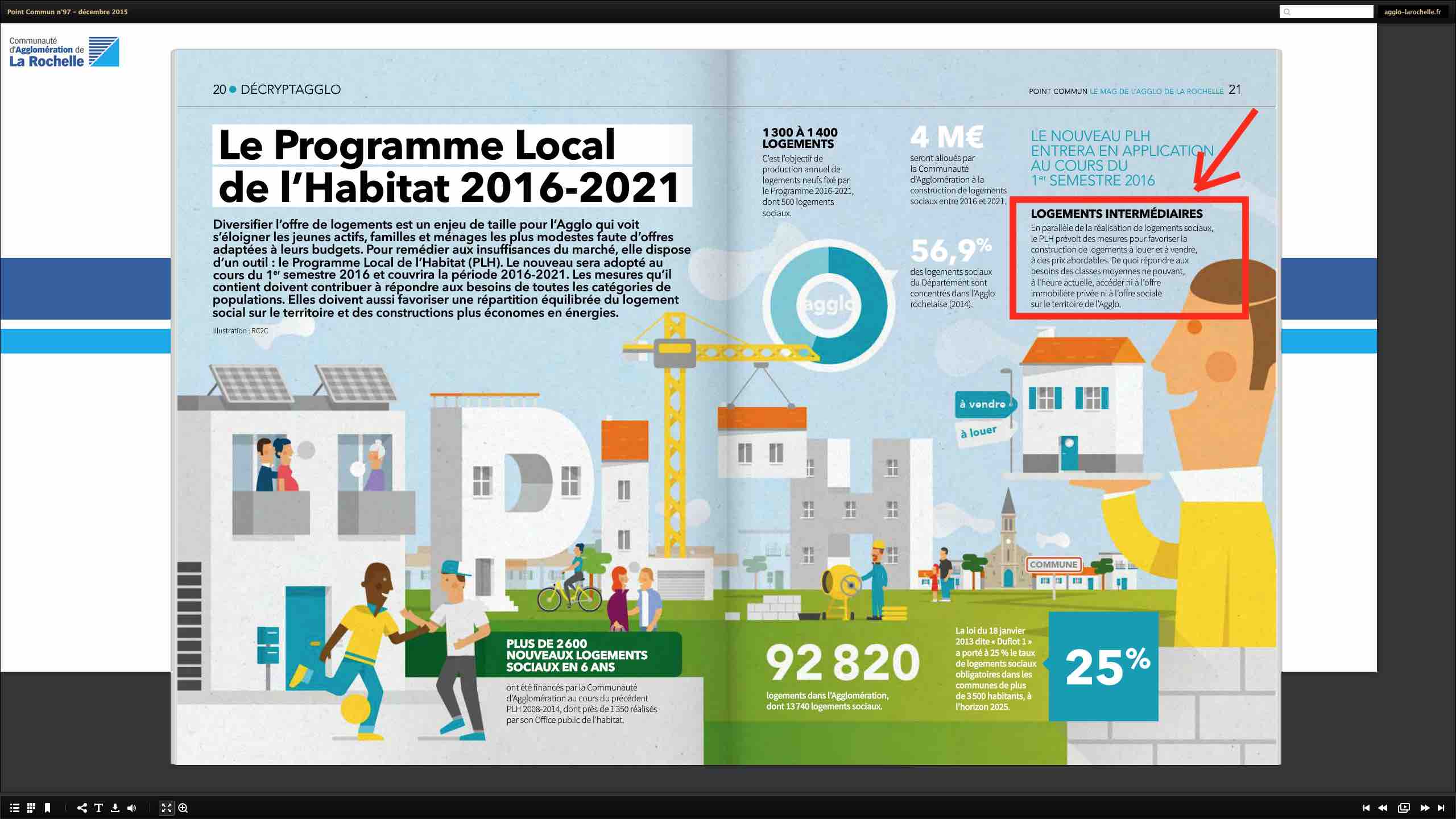 Notre projet pourrait de plus s’inscrire dans le Programme Local de l’Habitat 2016-2021 de la CdA de La Rochelle qui « prévoit des mesures pour favoriser la construction de logements à louer et à vendre, à des prix abordables. De quoi répondre aux besoins des classes moyennes ne pouvant, à l’heure actuelle, accéder ni à l’offre immobilière privée, ni à l’offre sociale sur le territoire de l’agglo ».